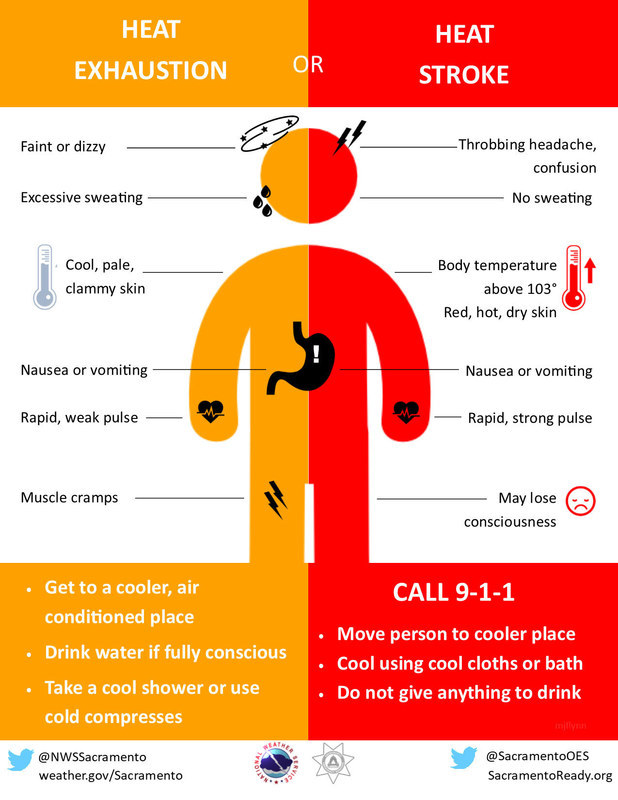 All community members are reminded to drink plenty of fluids, stay in an air conditioned room if possible, stay out of the sun, and check up on relatives and neighbors. Children and pets should never be left unattended in vehicles under any circumstances.
